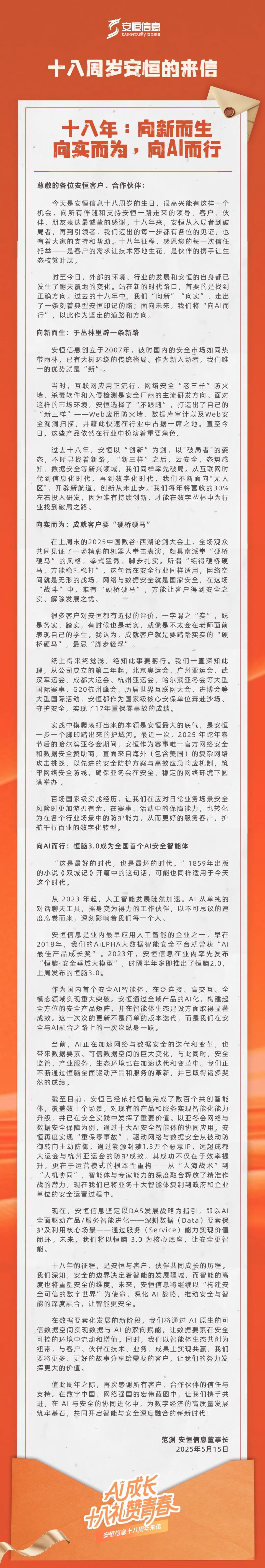 十八周岁安恒的来信:向新而生,向实而为,向AI而行
