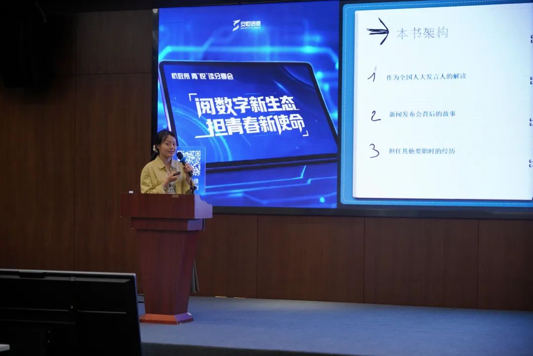 “悦”读分享环节中,青年代表依次就《中国历史的教训》《我的对面是你》《软件设计的哲学》《论数据要素市场》《芯片战争》等书籍进行了深入分享。分享内容既涵盖历史智慧、沟通艺术、技术哲学,也聚焦数据要素市场构建、全球半导体产业竞争等安恒信息联合杭数交、国家统计局杭州调查队开展党建带团建活动暨青“悦”读分享会前沿热点,展现了新时代青年广阔的知识视野和深刻的思考能力。