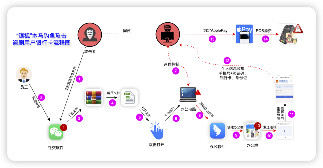 "银狐"木马(又名“游蛇”“谷堕大盗”)是近年来针对财税、金融领域定向攻击的顶级远控病毒,以社会工程学为核心手段,伪装成教育通知、政府文件、财税工具或热点通知,通过钓鱼链接诱导用户下载运行。其最新变种(2025年4月后)更是集远程操控、数据窃取、转账牟利、二次攻击于一体,危害指数飙升!