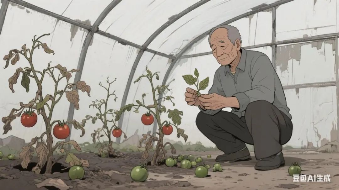 就在一年前,老王还很苦涩,一个人蹲在大棚里,捏着发皱的番茄叶片直叹气。