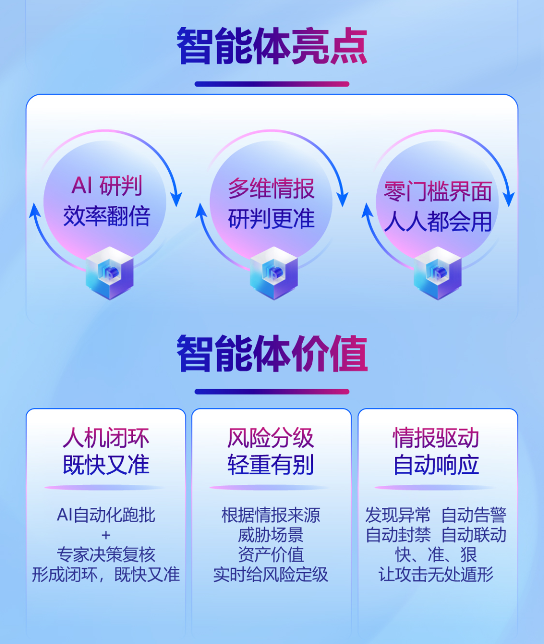 全生命周期安全防护,智能体驱动效能提升,场景化联动管控。