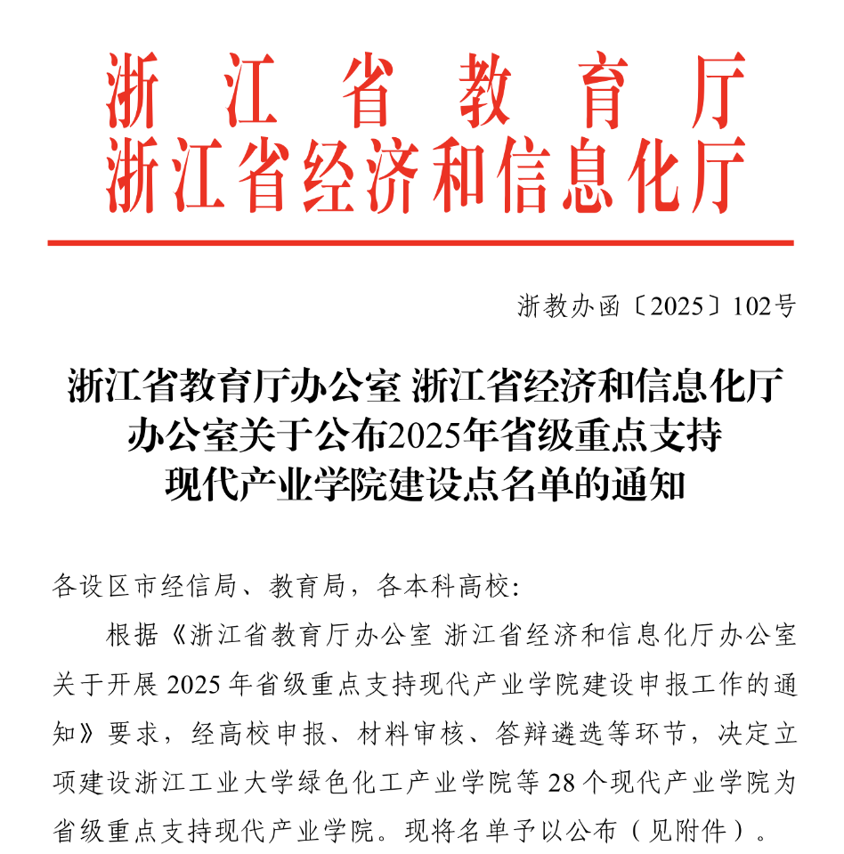 浙江省重点支持现代产业学院建设,是深入贯彻全国教育大会精神,落实教育部办公厅与工信部办公厅《现代产业学院建设指南(试行)》及省委省政府《浙江省加快建设教育强省规划纲要(2025—2035 年)》战略部署的重要举措,旨在通过推进产教融合与科教融汇,加快本科高校深化产教融合进程,建设特色鲜明的现代产业学院,打造一批集人才培养、科研创新、企业服务、学生创业就业等功能于一体的示范性培养实体。