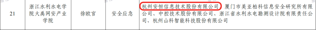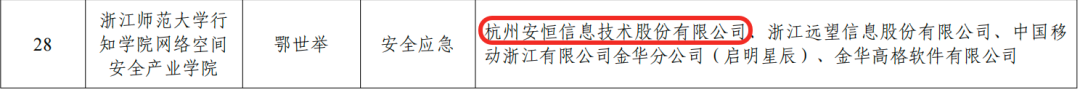 近日,浙江省教育厅与浙江省经济和信息化厅联合发布《关于公布2025年省级重点支持现代产业学院建设点名单的通知》,安恒信息与浙江水利水电学院共建的大禹网安产业学院、与浙江师范大学行知学院共建的网络空间安全产业学院双双入选。这是安恒信息第二次入选浙江省重点支持现代产业学院建设点名单。截止目前,安恒信息已有4所浙江省级重点支持现代产业学院。
