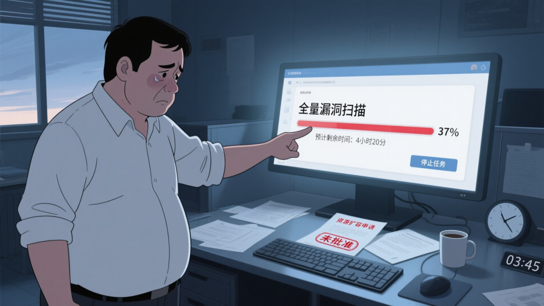赶到公司,常规扫描任务的进度条像凝固了一样。两小时前启动的全量扫描还卡在 37%,老李急忙按下任务停止。