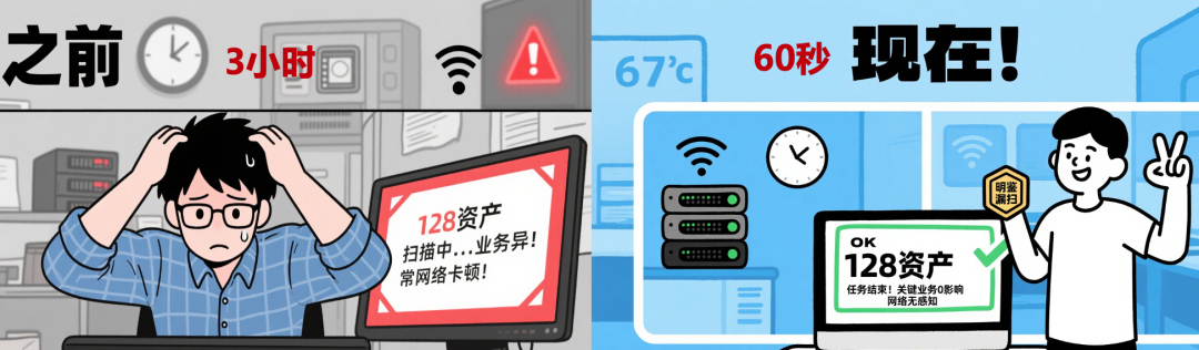 “重保和护网期间,我们就像在和时间赛跑,但传统漏扫就像踩着高跟鞋跑步 —— 想快也快不起来。”想着这些,老李靠在椅背上怎么也睡不着。