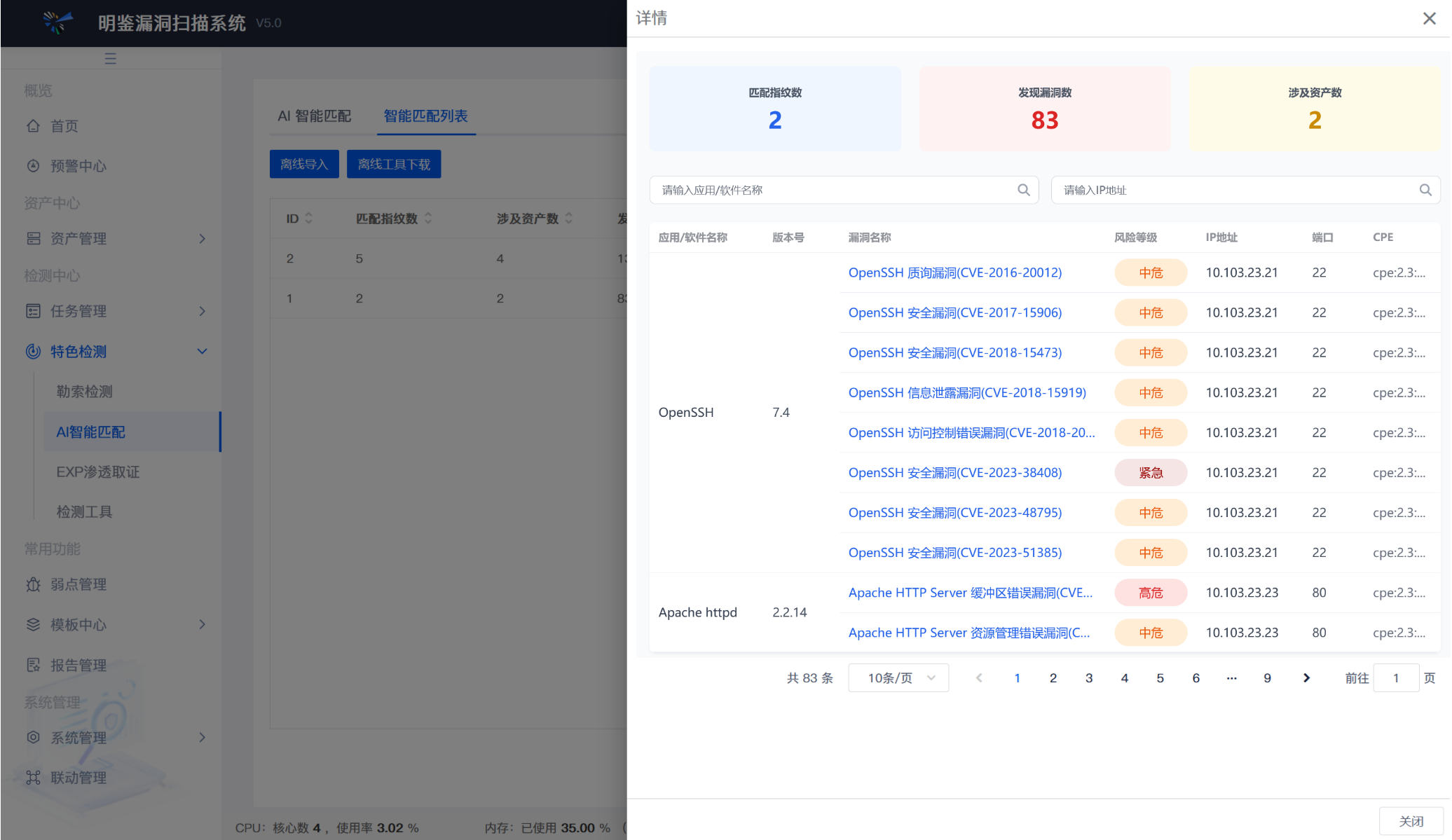 128 台服务器的扫描任务在 67 秒内完成。沉积难修的几个漏洞都被发现,更意外的是,除了通过AI智能体匹配互联网最新漏洞情报库外,内部网络还能基于自带漏洞库做检测,都做到了对业务0发包的无感扫描,重要业务系统均稳定运行。
