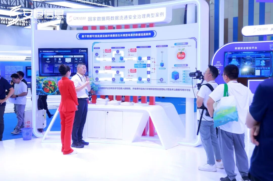 展区还展出安恒信息自研数由器、数由空间等创新产品,展现国家数据基础设施试点建设成果。其中,数由空间作为核心基础设施,成功打通“找数-用数-护数”全链路,建立合规、可计量、可追溯的数据流通机制。