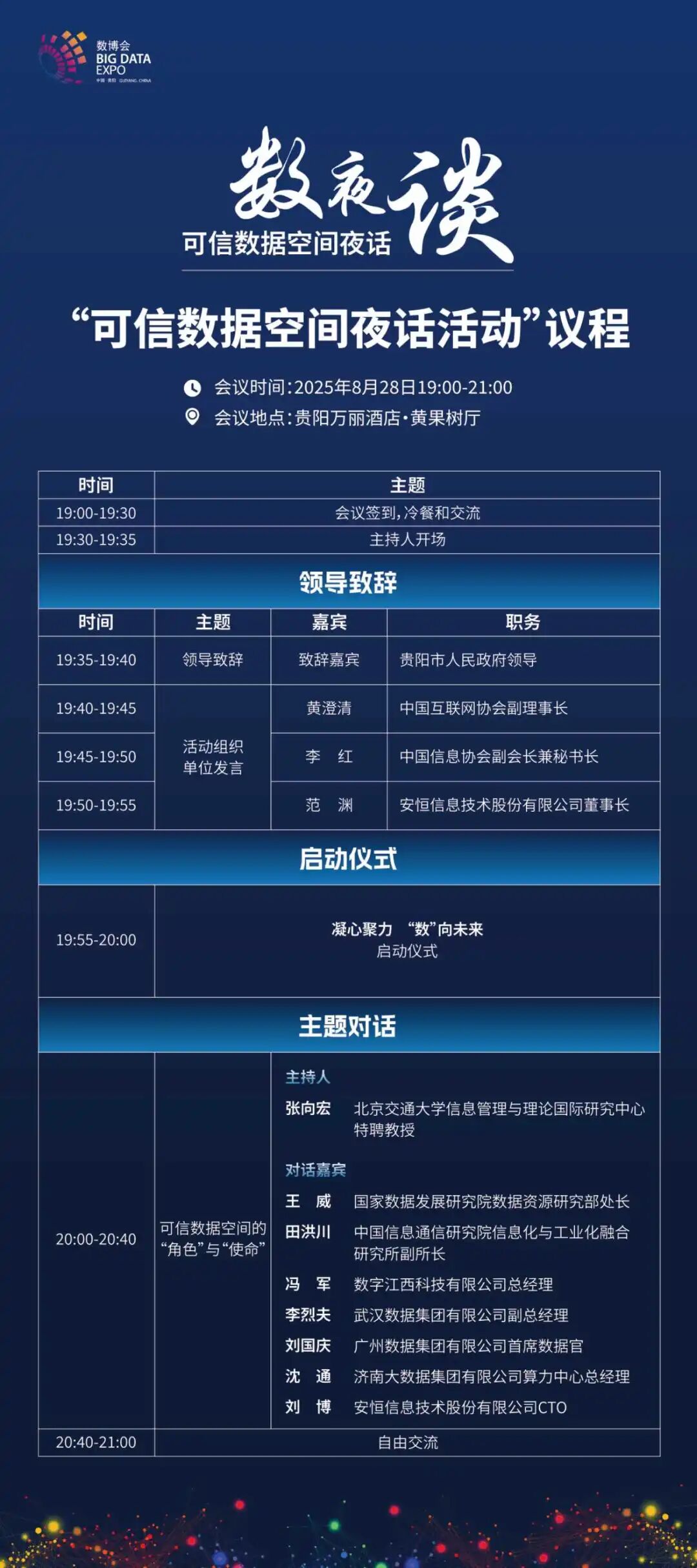 8月28日(今晚)19:00,安恒信息还将举办“可信数据空间夜话”活动,聚焦连接技术供应商、数据提供方、可信数据空间监管方等多元主体,打造闭门深度对话场景。