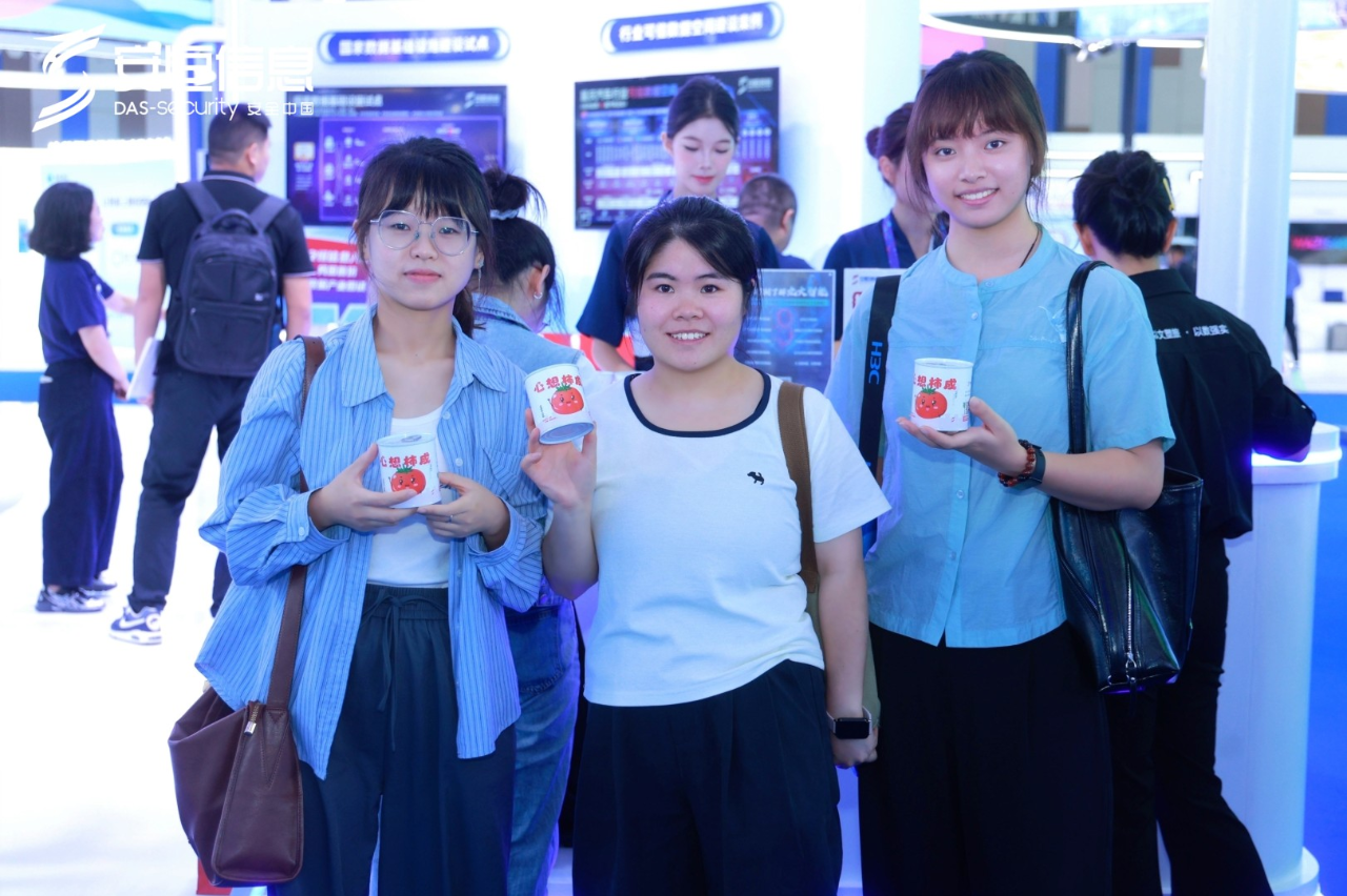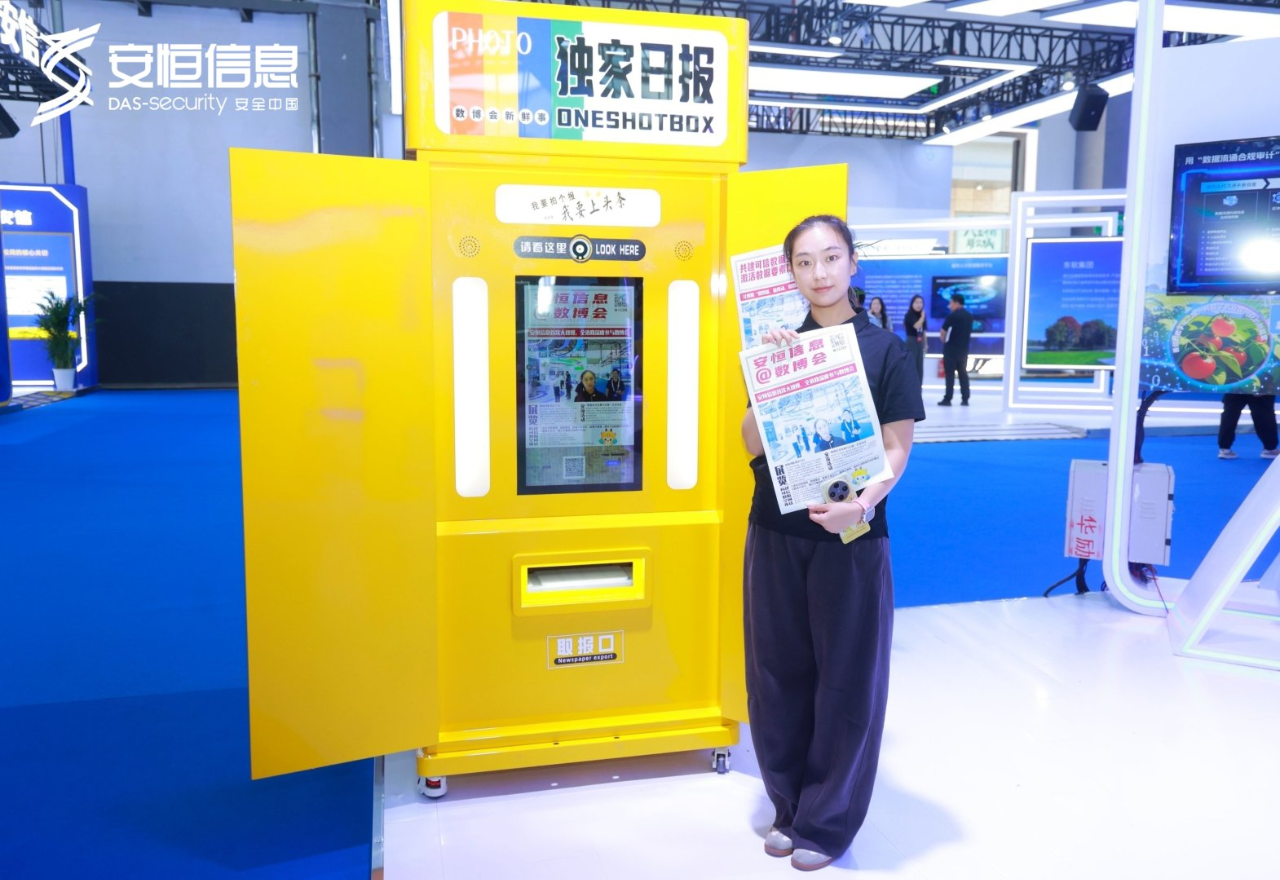 此外,安恒信息打造的互动体验区成为人气打卡聚集地。其中基于“国家数据局五大数据流通安全治理典型案例之一”——“番茄生长模型”创意而来的“番茄罐头+番茄种子”限定伴手礼以创意slogan和独特设计引发收藏热潮;“安恒信息独家日报”拍报机让观众能够生成印有自己照片的定制版报纸封面,趣味性的互动体验吸引不同年龄段观众积极参与。