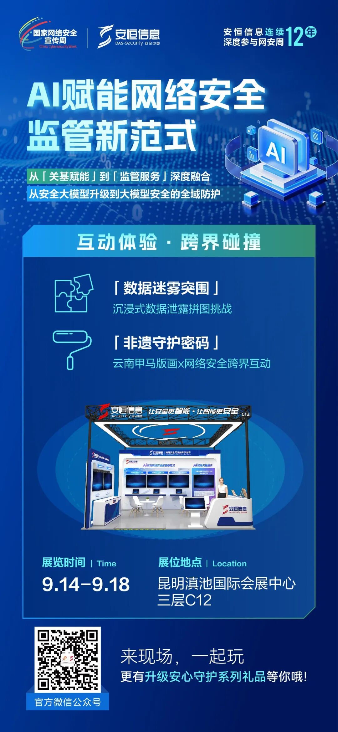 安恒信息邀请您共同见证恒脑3.0赋能网络安全新范式、AI赋能的新一代网络安全协调指挥平台、数据安全监管解决方案、威胁情报联合防御体系、企业一站式服务平台、AI全域安全防护方案等最新成果,与您共同探讨AI与安全前沿趋势,以高水平安全守护高质量发展。