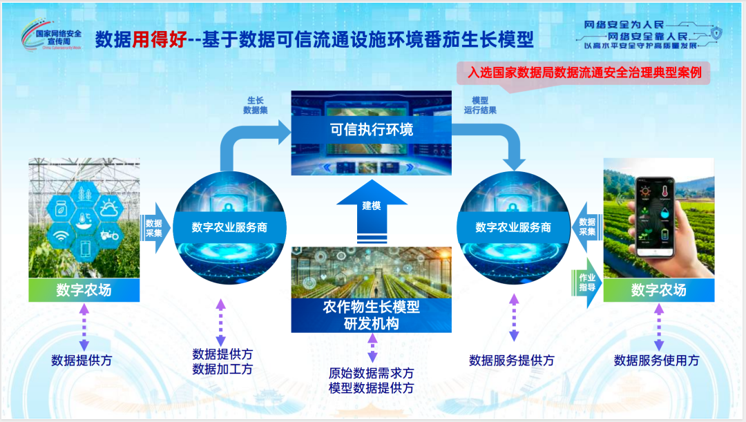 数据“用得好”是赋能产业升级的关键。在智慧农业领域,安恒信息基于可信数据空间打造番茄生长模型场景,构建“数据采集-建模-应用”全链路体系,通过链式授权提升农业安全治理效率,实现数据在多方间的安全流通与价值共创。该案例入选国家数据局“数据流通安全治理典型案例”,预计 3 年内使用该番茄生长模型的番茄产值将从亿元跃升至百亿。据悉,在2024年,安恒信息为卫健委医学人工智能主题赛提供技术支撑,实现了大赛过程中“数据可训不可见”目标,规避了医疗数据泄露风险。