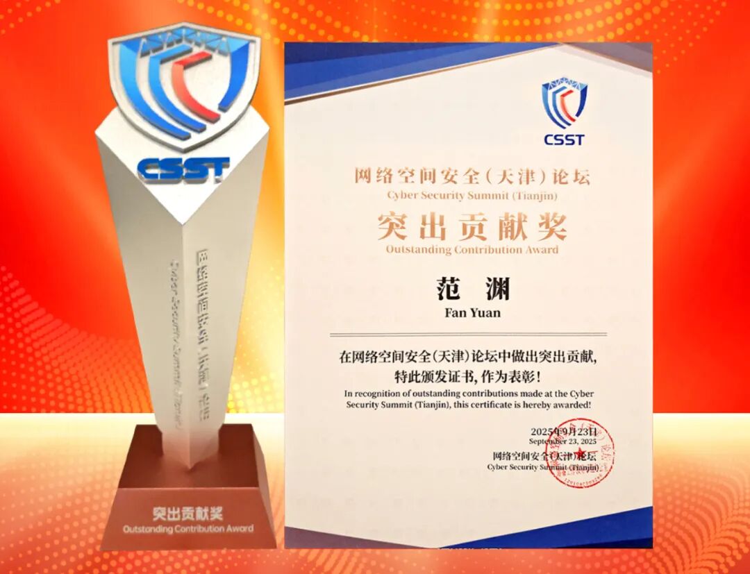 范渊荣获第三届网络空间安全(天津)论坛突出贡献奖,以“知攻善防”为主题做分享