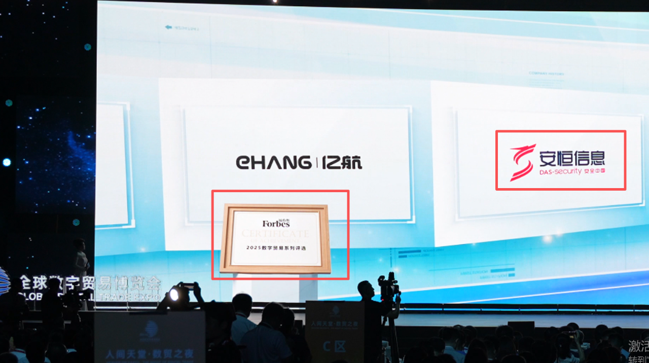 在当晚举行的“数贸之夜”活动现场,福布斯和赛迪顾问股份有限公司分别发布“2025全球数字贸易行业企业100评选”和“2025全国数字贸易企业百强榜”,安恒信息凭借在数据安全流通、AI驱动威胁防御、跨境合规等方面的综合能力,成为少数同时登榜的网络安全企业,体现了权威机构对其“以AI+安全赋能贸易”实践的高度认可。
