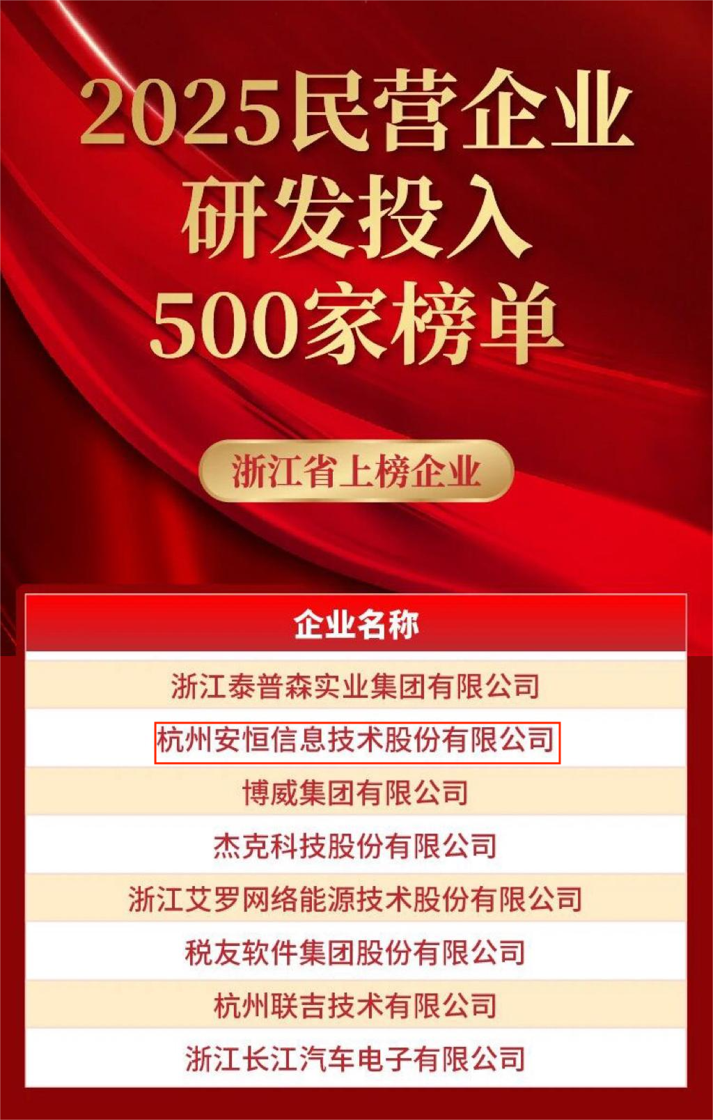 安恒信息再登全国工商联研发和专利双500榜!
