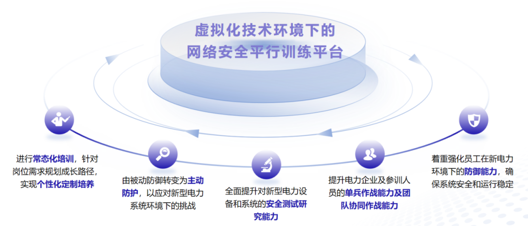 报告特别引用了某电力电科院网络安全平行训练平台项目作为优秀案例。该项目正是基于安恒信息虚拟化+资源中台+高保真仿真的技术架构,搭建与真实运行环境所有要素高度一致的测试、验证、训练空间,提供给公司网络安全对抗人员,在安全可靠的试验环境中进行相关技术研究与网络安全预案演练,发现潜在网络安全隐患。