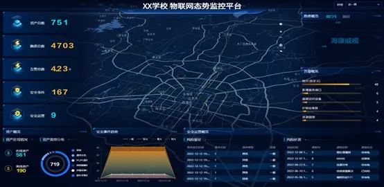 依托大数据安全分析技术,实现校园内物联网设备安全威胁可视化、安全态势整体感知、管控,以可视化方式展示异常威胁和风险行为,快速发现物联网应用的异常威胁和告警。