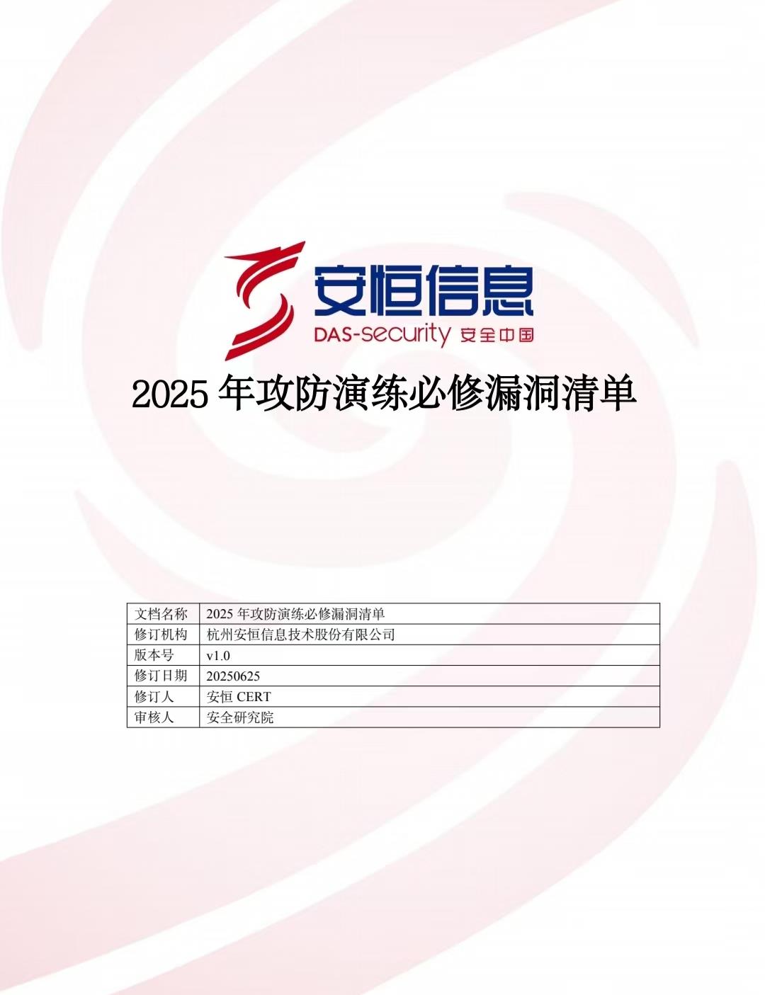 本清单旨在为攻防演练前的漏洞排查工作提供辅助指导,涵盖常见的高危漏洞、微软近期在野漏洞以及微软严重漏洞,帮助安全团队优先处理可能被攻击者利用的薄弱环节,从而在演练中更高效地验证防御策略,并为后续安全建设提供数据支撑。
