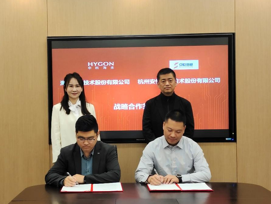 近日,安恒信息与海光信息技术股份有限公司(以下简称“海光信息”)正式签署战略合作协议,此次签约不仅确立了双方在技术创新、生态构建、资源共享等多领域长期稳定的战略合作伙伴关系,更将立足“芯片+应用”“算力+安全”的双轮驱动模式,建立长期协同机制,助力行业数字化与智能化转型。此次安恒信息与海光信息的战略合作,不仅是国产算力与应用软件深度融合的重要里程碑,也将为千行百业的数字化转型提供更安全、高效、智能的解决方案。未来,双方将持续以“芯”为基、以“智”为擎,携手共建开放协同的产业生态,助力中国数字经济实现高质量发展。
