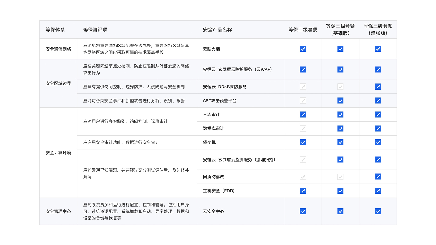 一站式等保产品套餐,满足用户等保合规安全需求