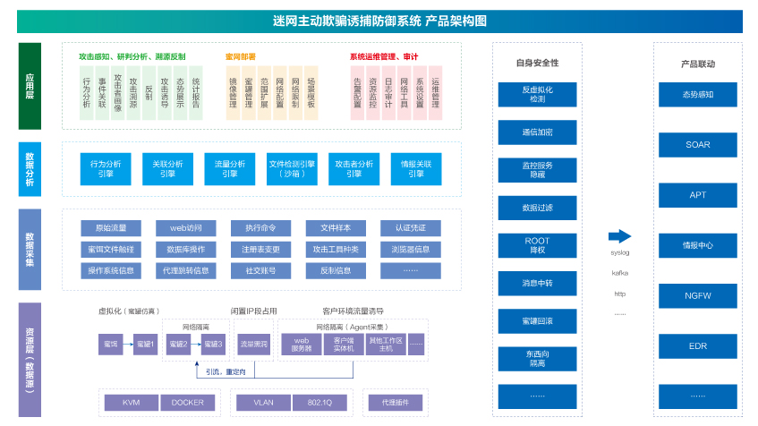 · 利用蜜罐捕捉攻击流量映射至APT等检测设备进行深度分析,增加横向威胁感知;