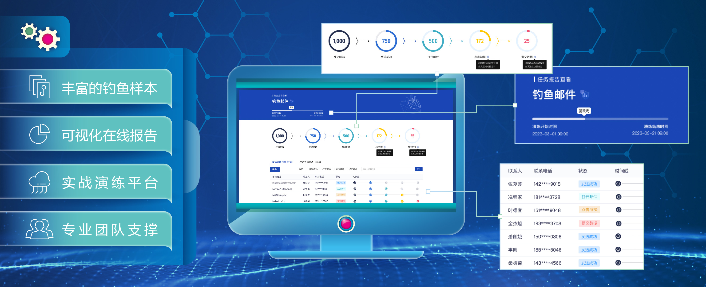 ·月度安全主题海报定制:每月根据特定主题设计海报,用于线上线下宣传。·网络安全周(网安周)支持:提供活动策划、宣传材料设计、现场布置等服务。