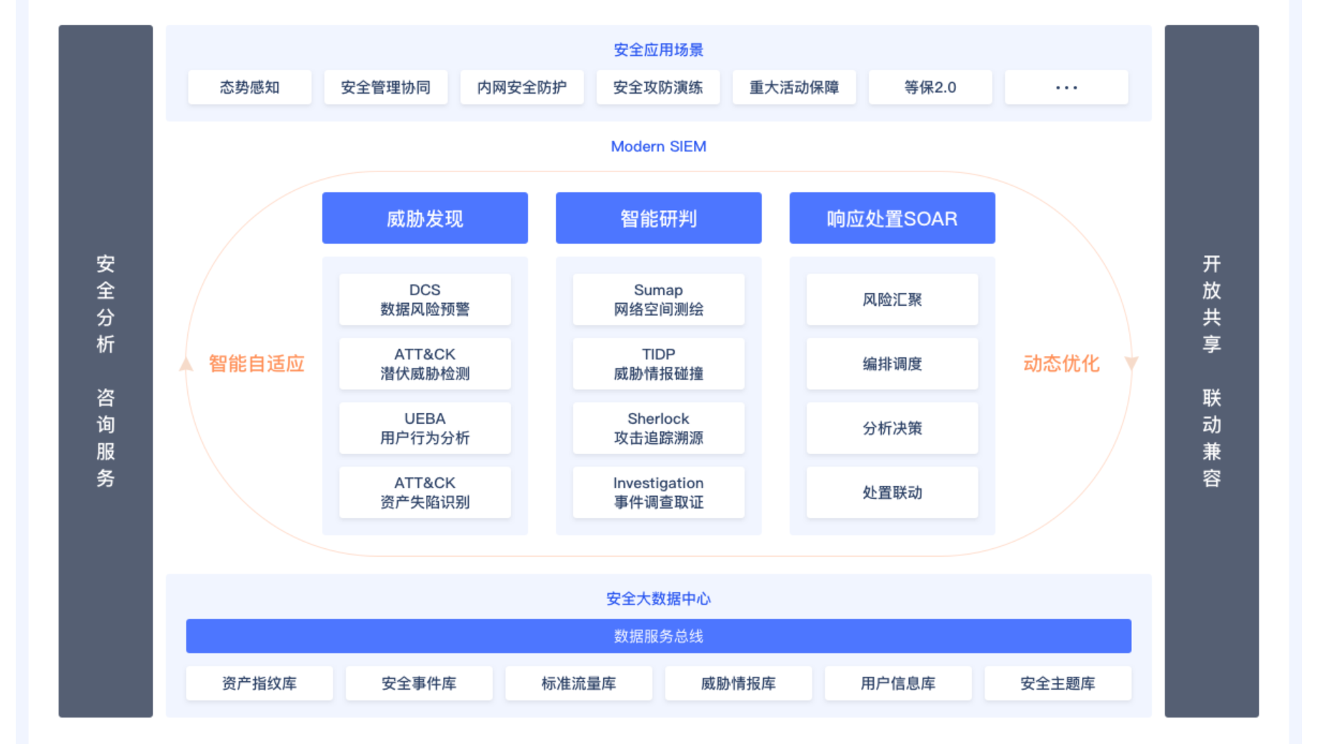 AiLPHA大数据态势感知平台主要面向监管、行业主管部门和关键信息基础设施运营使用单位,平台以云为基础架构,以大数据为技术支撑,以关键信息基础设施全生命周期数据治理为核心,以重要系统全息档案、安全保卫人员全息档案和网络攻击武器及手段情报档案为抓手,纵向贯通、横向联动、智慧高效、搭建城市级安全监管运营体系,实现网络空间安全综合治理、全网固证提取溯源、跨组织安管协作三大能力。