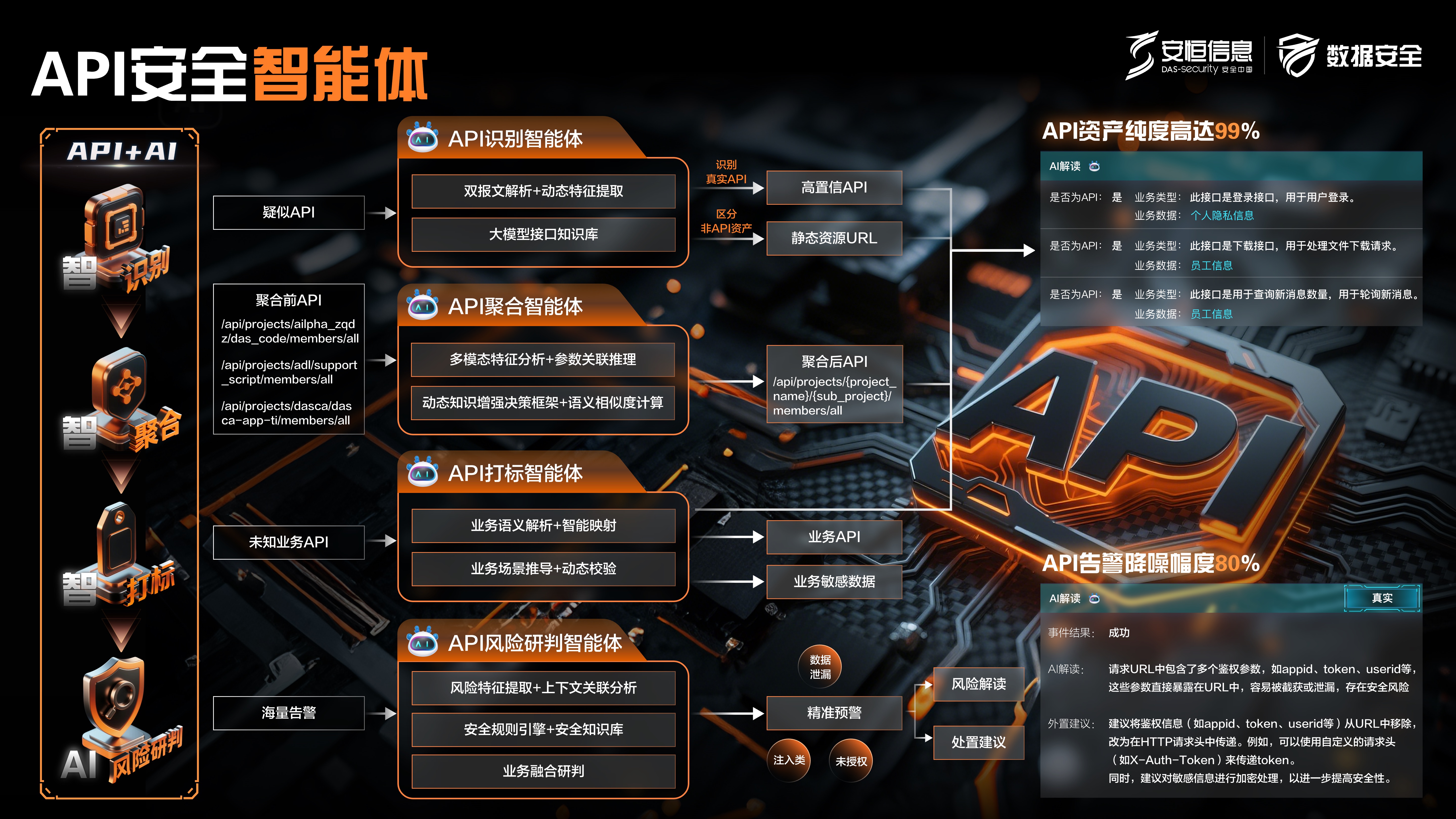 安恒API安全网关系统提供API的创建、维护、监控、发布、参数校验等API生命周期管理功能和API的攻击防护、访问控制、动态脱敏、数据水印、身份认证等API安全防护能力。