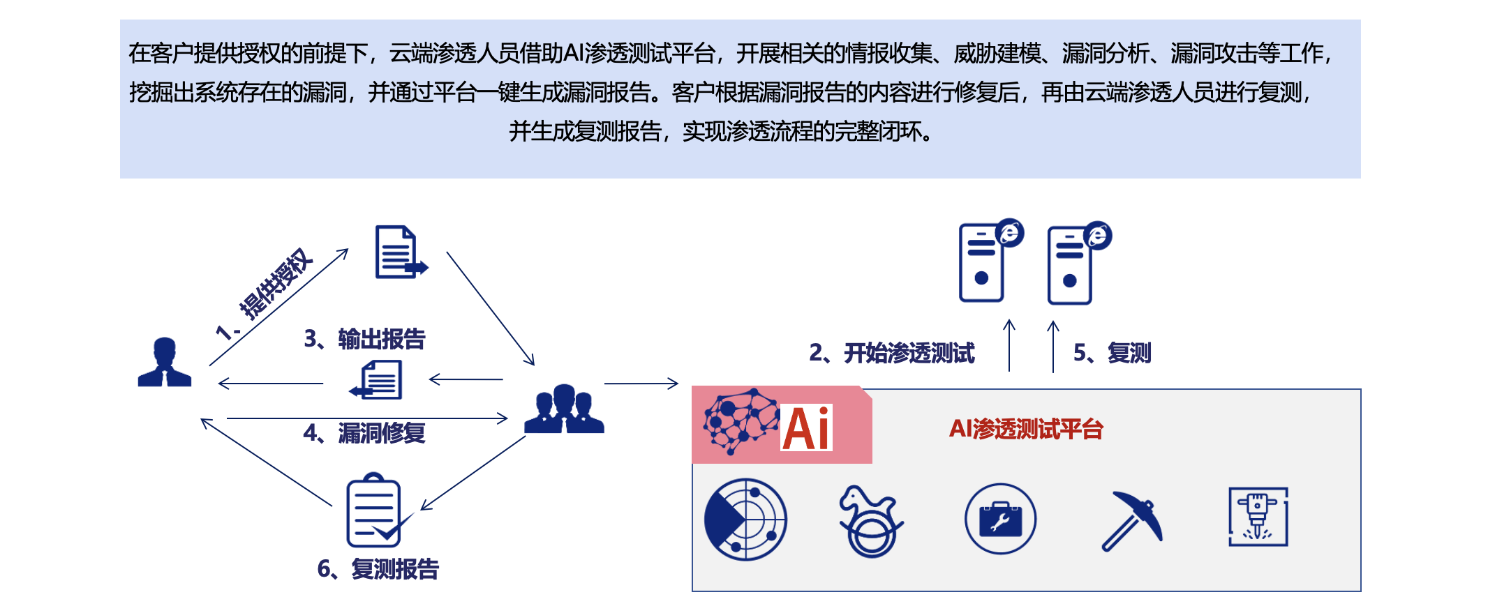 AI远程渗透测试,是由云端的渗透专家借助AI技术,开展的半自动化的渗透测试服务。AI渗透测试平台将渗透人员的知识经验、工具使用持续沉淀,在工具调用、渗透思路提示、网站功能点遍历、报告编写等多个维度进行提效,并提高渗透的覆盖度。
