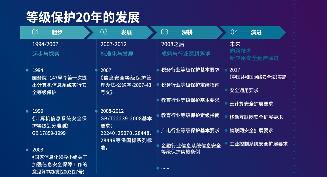 由来:《中华人民共和国计算机信息系统安全保护条例》(中办发【1994】147号)第一次提出了“计算机系统分等级保护”的概念。