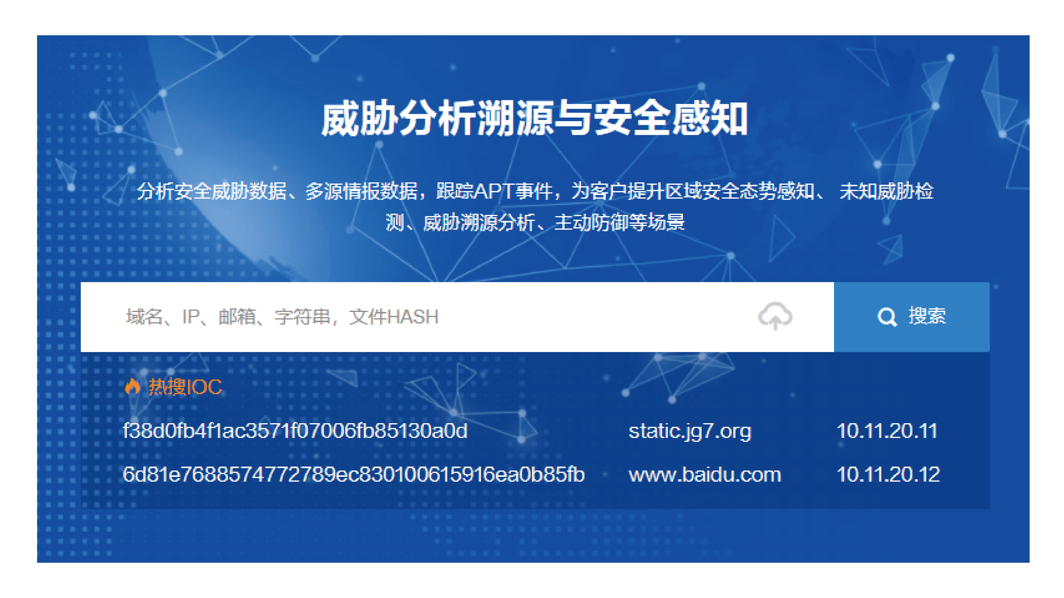 威胁情报社区服务是基于安恒威胁情报中心的情报检索、情报资讯、情报上报、情报评价、情报订阅等对外能力形成社区平台化的服务,用户可以进行免费注册、免费查阅、免费检索等体验。