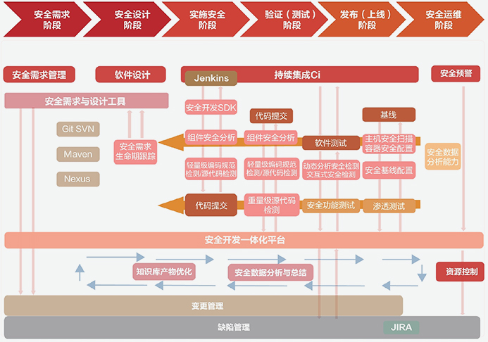 安恒信息根据安全开发生命周期领域多年的深入研究和分析,吸收了DevSecOps的思想,参考SDL相关方法论和成熟度模型的指导建议,结合自身在安全领域多年的经验及技术积累,打造了专门针对安全开发的产品,旨在帮助用户构建起完整、高效且高质量的安全开发体系,满足软件的安全性需求。