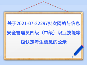 关于2021-07-22297批次网络与信息安全管理员四级(中级)职业技能等级认定考生信息的公示