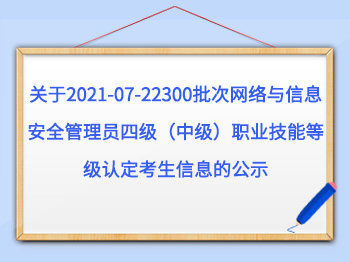 关于2021-07-22300批次网络与信息安全管理员四级(中级)职业技能等级认定考生信息的公示