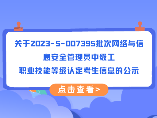 关于2023-S-007395批次网络与信息安全管理员中级工职业技能等级认定考生信息的公示