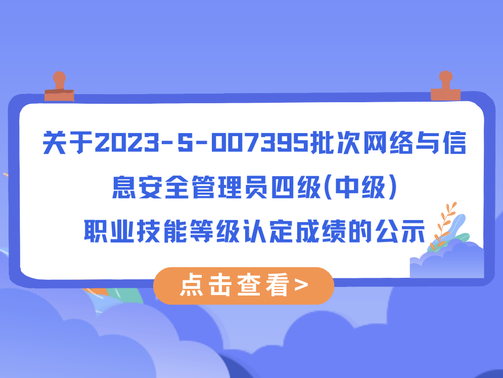 关于2023-S-007395批次网络与信息安全管理员四级(中级)职业技能等级认定成绩的公示