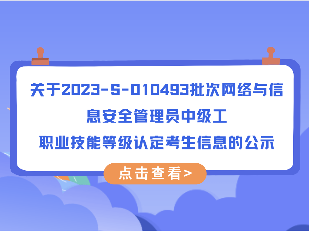 关于2023-S-010493批次网络与信息安全管理员中级工 职业技能等级认定考生信息的公示