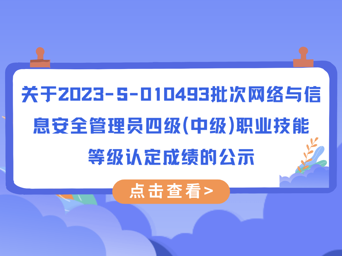 关于2023-S-010493批次网络与信息安全管理员四级(中级)职业技能等级认定成绩的公示