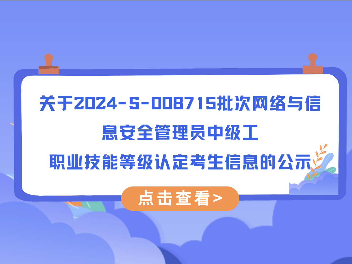 关于2024-S-008715批次网络与信息安全管理员中级工职业技能等级认定考生信息的公示