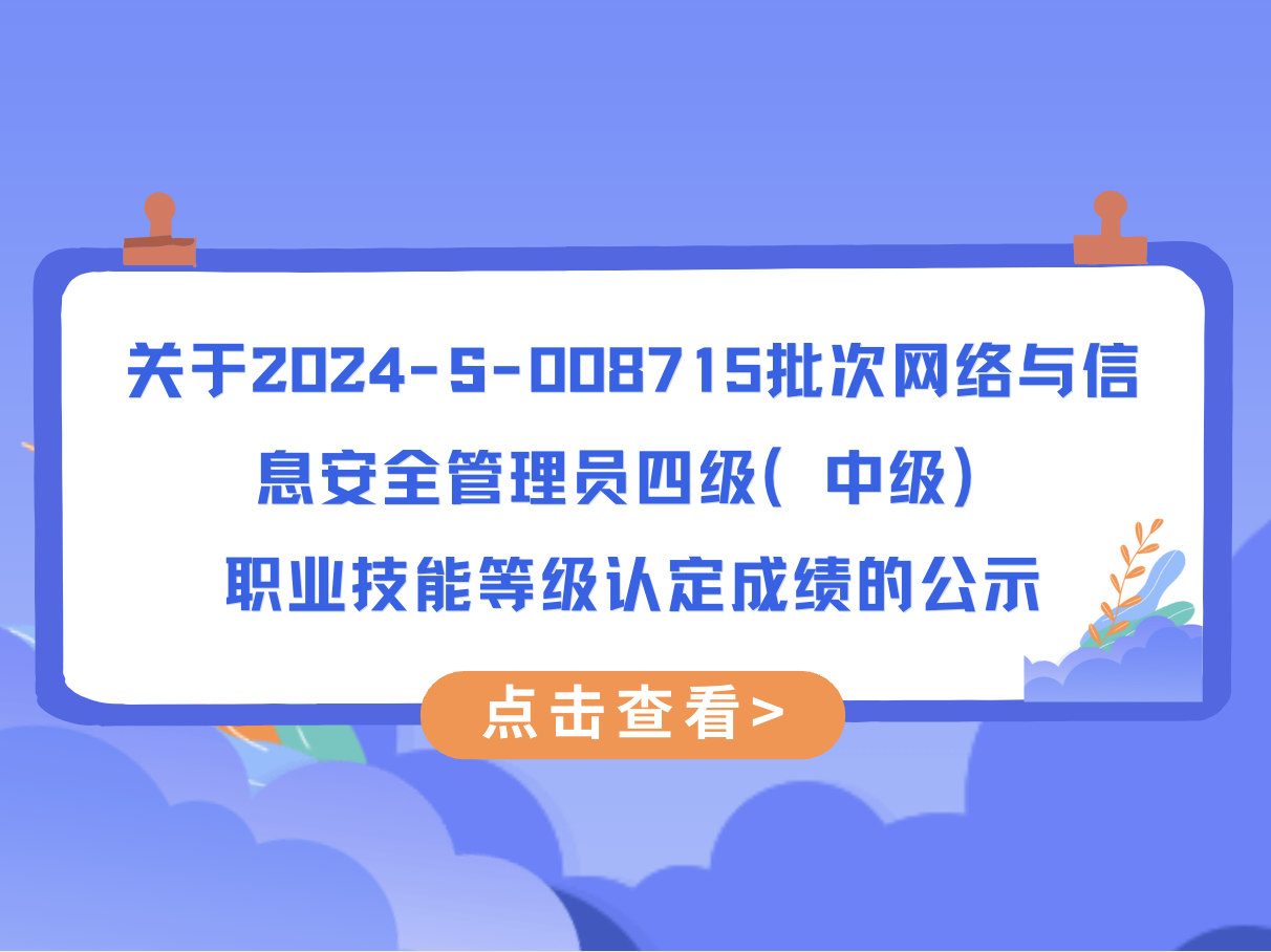 关于2024-S-008715批次网络与信息安全管理员四级(中级)职业技能等级认定成绩的公示