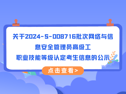 关于2024-S-008716批次网络与信息安全管理员高级工职业技能等级认定考生信息的公示