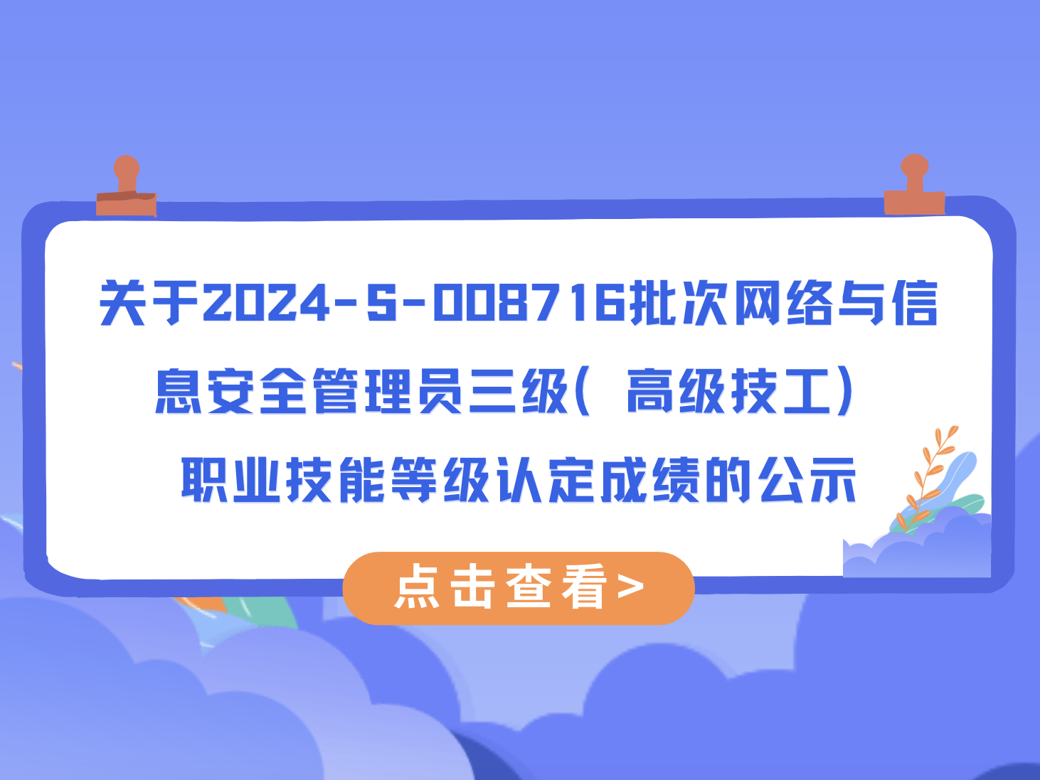 关于2024-S-008716批次网络与信息安全管理员三级(高级技工) 职业技能等级认定成绩的公示