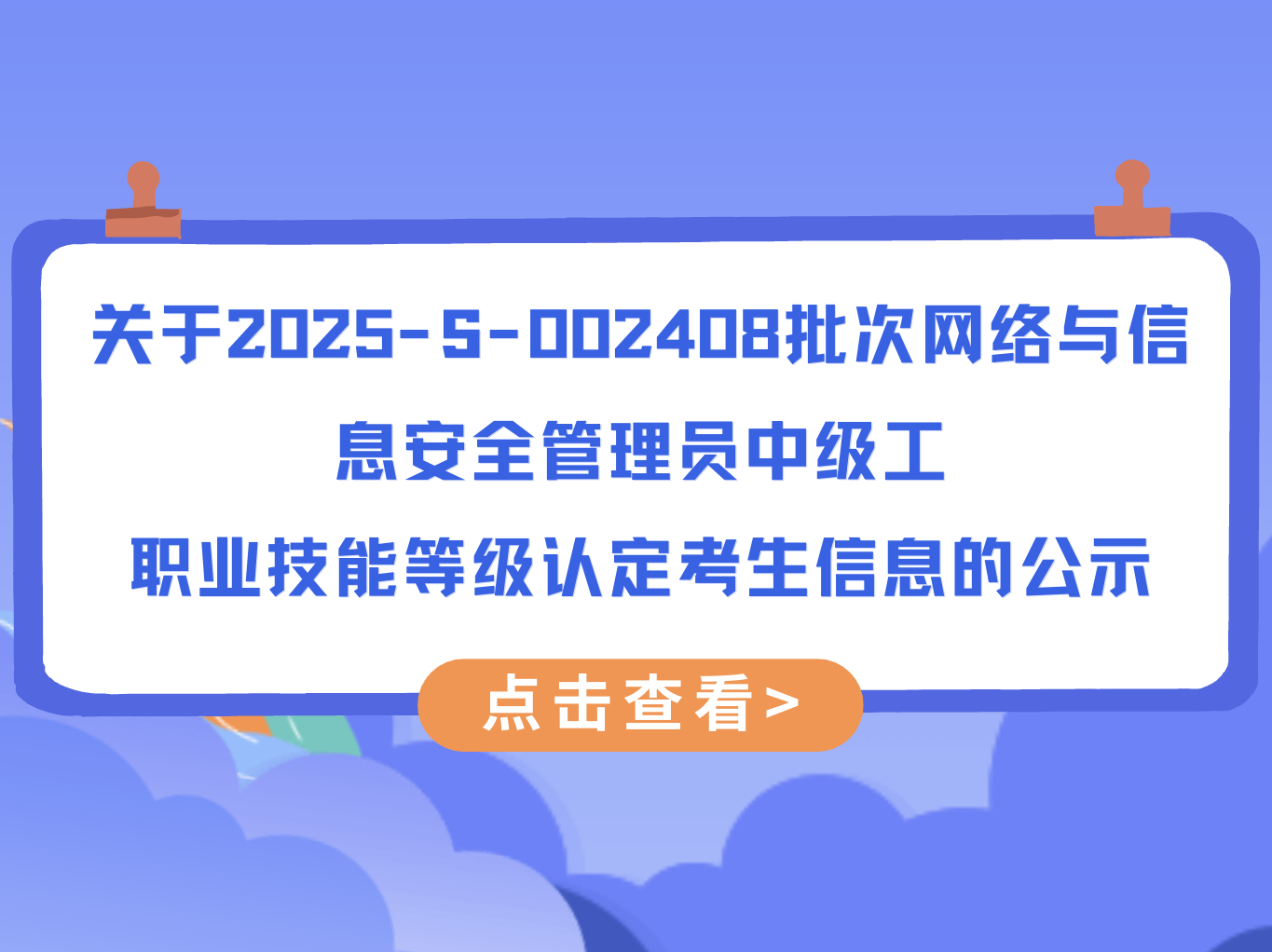关于2025-S-002408批次网络与信息安全管理员中级工职业技能等级认定考生信息的公示