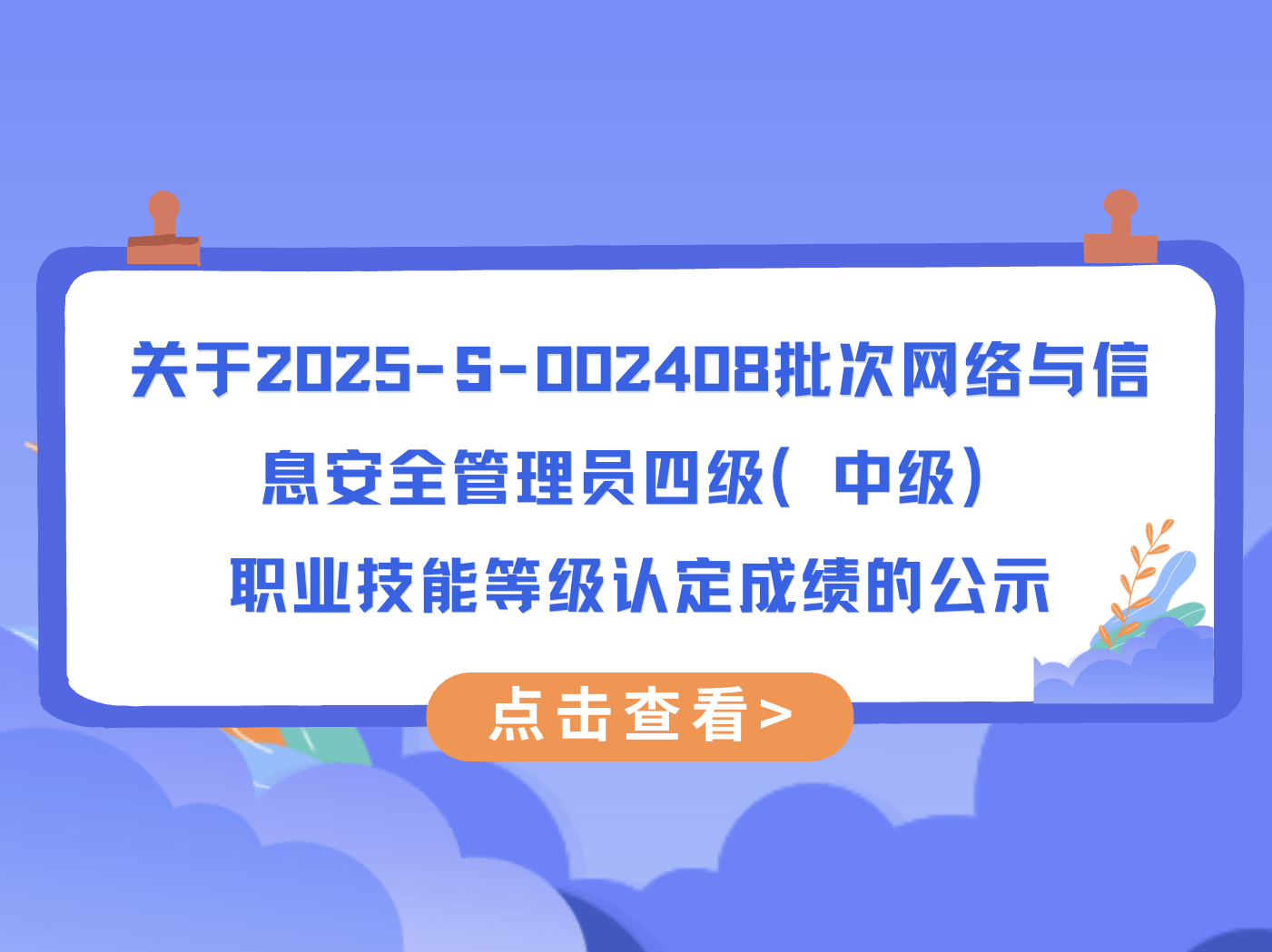 关于2025-S-002408批次网络与信息安全管理员四级(中级)职业技能等级认定成绩的公示