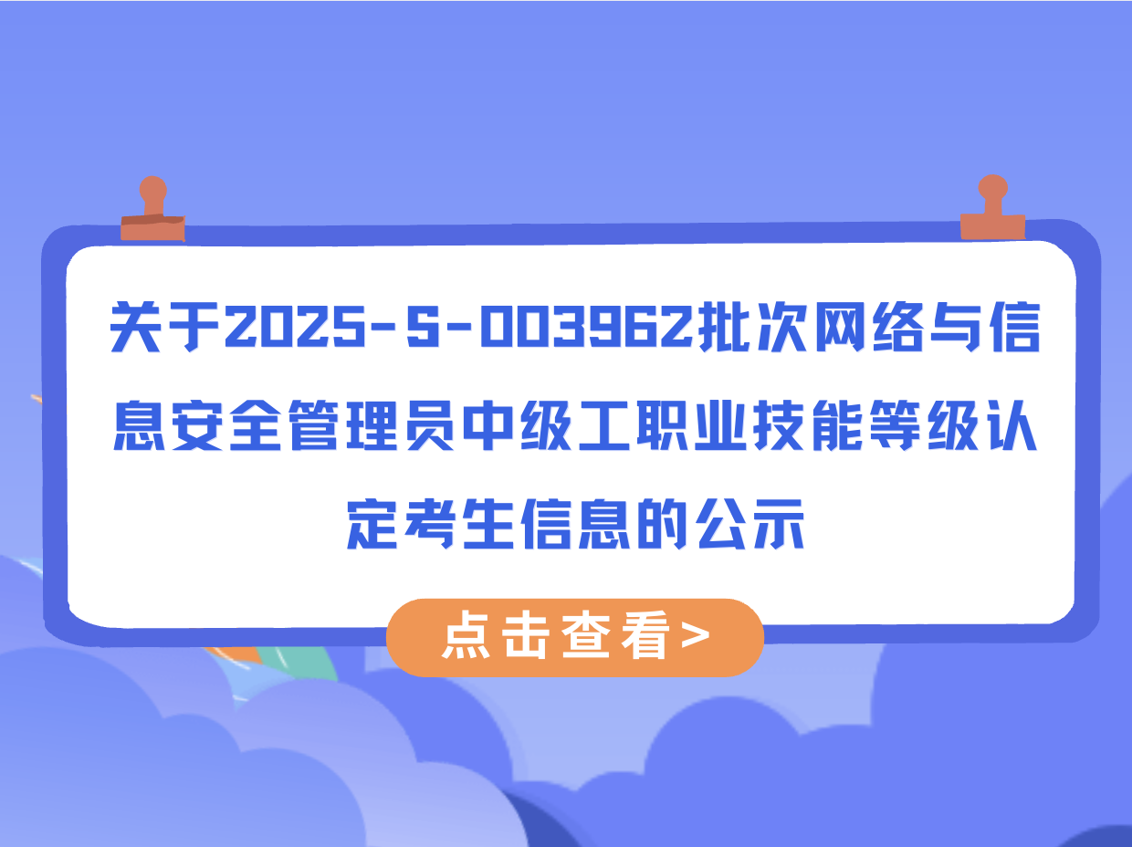 关于2025-S-003962批次网络与信息安全管理员中级工职业技能等级认定考生信息的公示
