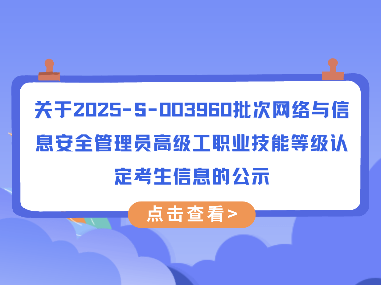 关于2025-S-003960批次网络与信息安全管理员高级工职业技能等级认定考生信息的公示