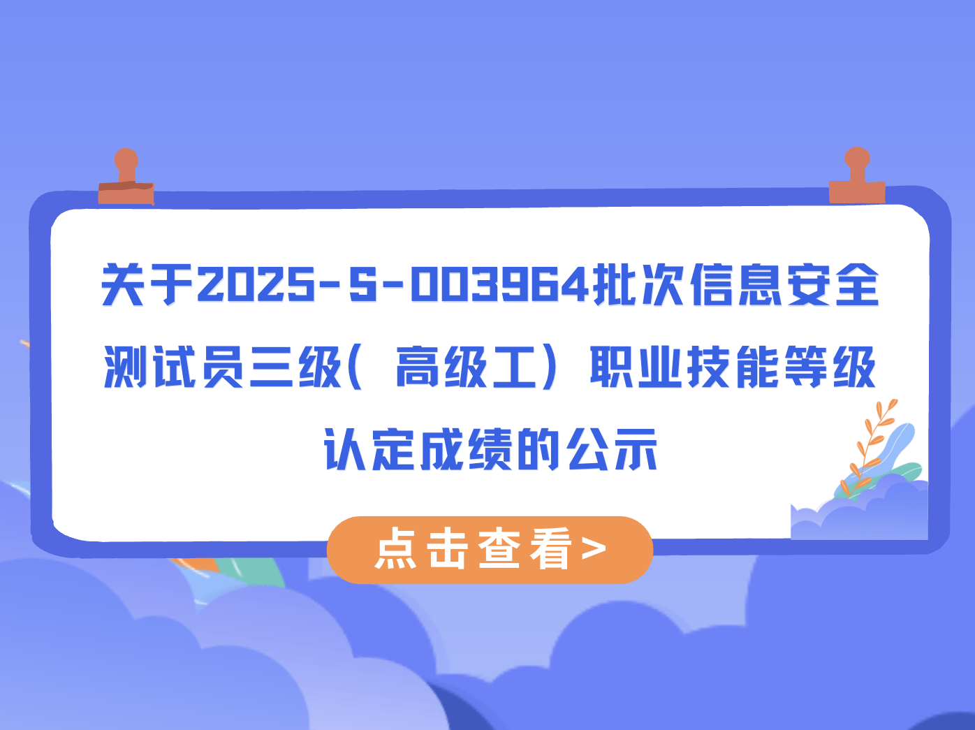 关于2025-S-003964批次信息安全测试员三级(高级工) 职业技能等级认定成绩的公示