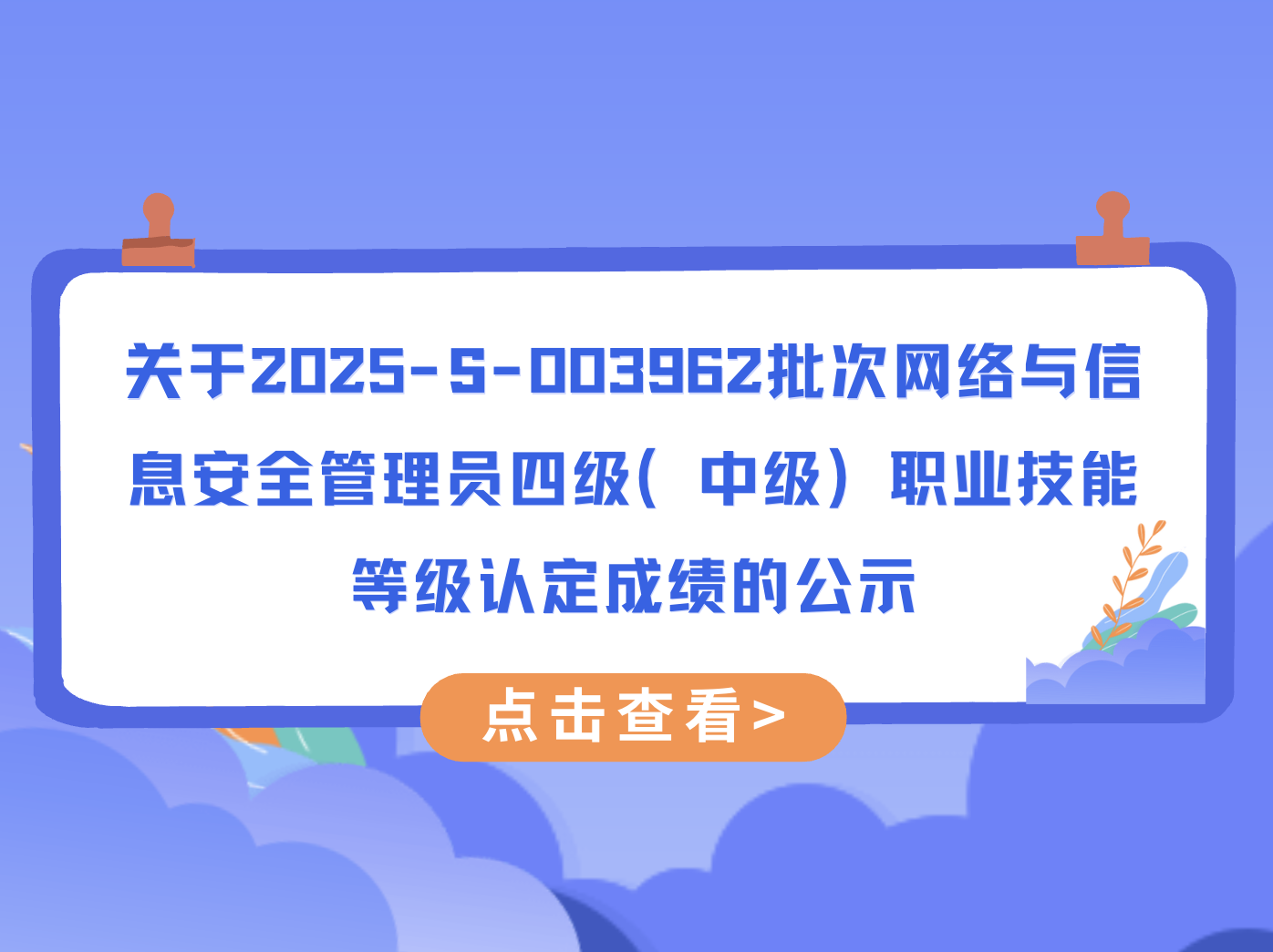 关于2025-S-003962批次网络与信息安全管理员四级(中级) 职业技能等级认定成绩的公示