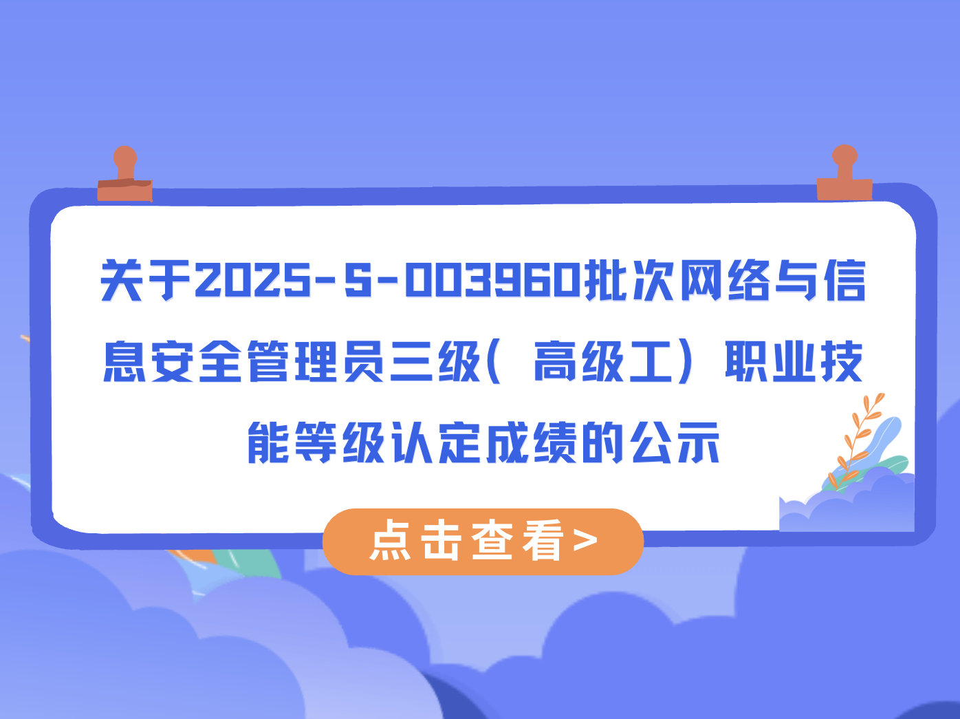 关于2025-S-003960批次网络与信息安全管理员三级(高级工) 职业技能等级认定成绩的公示